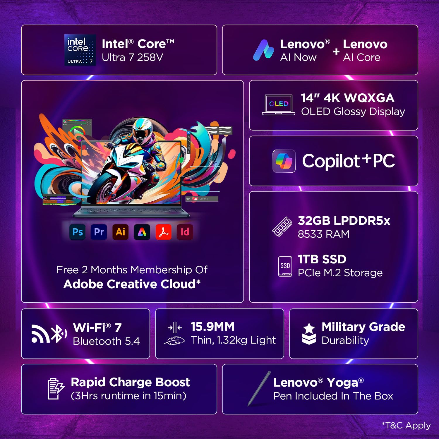Yoga 9 2in1 (Aura Edition) laptop with CORE ULT7 258V, 32GB,1TB SSD, WINDOWS 11 HOME 64 SL.
